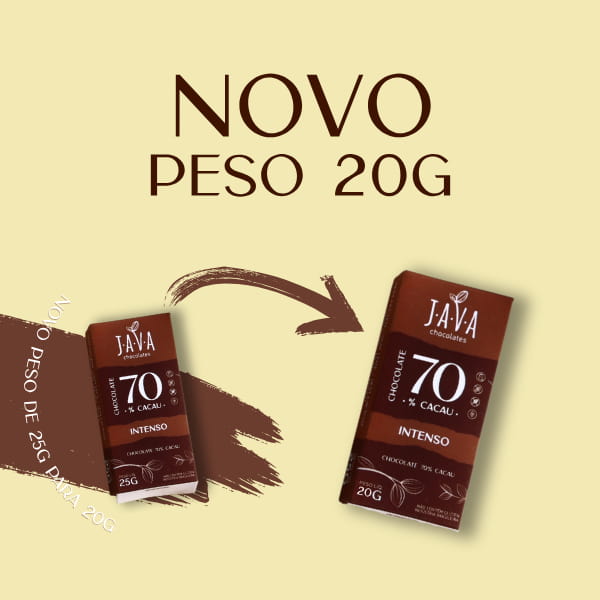 Pack contendo 5 tabletes de 20g cada de chocolate 70% cacau